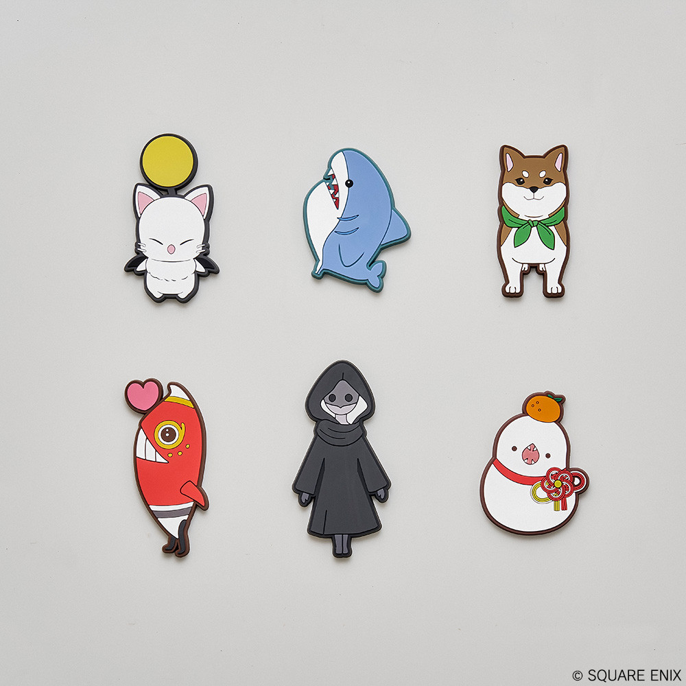 Una colección de imanes de goma con algunos de los personajes más queridos de FINAL FANTASY XIV.