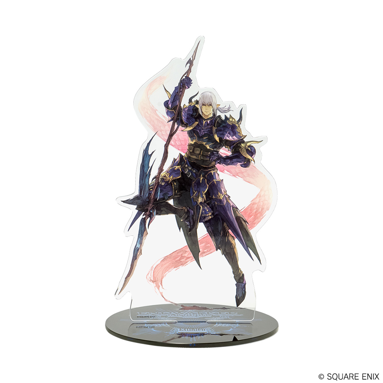 Una peana de acrílico con una magnífica ilustración de Estinien de FINAL FANTASY XIV: Endwalker.
